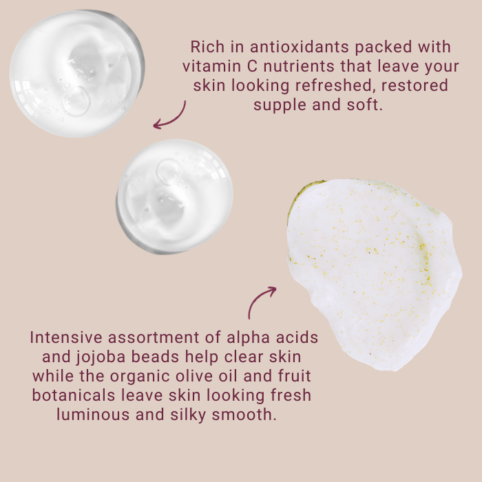 Vitalizing Exfoliating Cream is perfect for all skin types. This gentle jojoba bead exfoliant helps uncover your gorgeous, clarified skin, thanks to an intensive assortment of alpha acids. The organic olive oil and fruit botanicals will leave skin looking fresh and luminous and silky smooth.