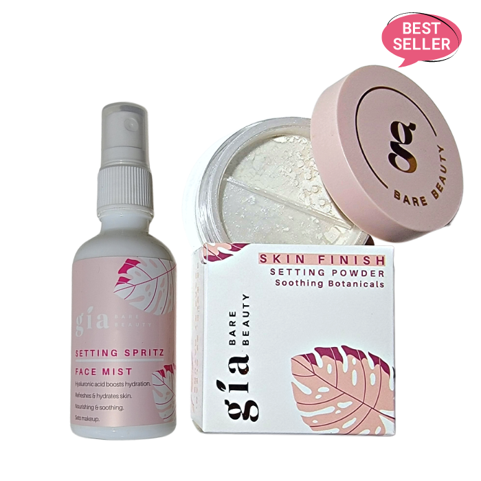 The Finale Duo also includes our Setting Spritz Mist which is formulated with hyaluronic acid and a blend of antioxidant teas it not only sets makeup it also boosts skins radiance and minimizes fine lines. Its a wonderful antioxidant treatment like no other and can also be used as face toner. Its is so convenient for refreshing & hydrating the skin just make sure you always have in your bag / travel bag. Fabulous for all skin types, including oily, sensitive, normal and combo skin.