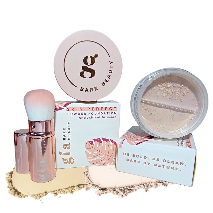 Gia Bare Beauty introduces The Flawless Trio - Clean Beauty Makeup Set This set was curated for the clean beauty lover and is a fast and easy way for a that flawless fresh application you have been looking for. This set allows for a perfect polished complexion every time with a naturally radiant finish in the coverage you desire whether its light, medium or full. The weightless plant based antioxidant rich, formulas feel silky smooth on the skin and wear beautifully all day long without clogging pores in healing organic ingredients that nourish the skin for an instantly more beautiful you.